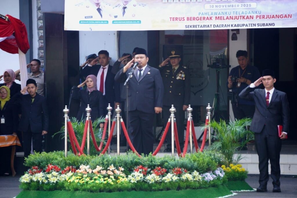 Sebagai Inspektur Upacara, Bupati Subang membacakan amanat Menteri Sosial Republik Indonesia dalam rangka Peringatan Hari Pahlawan Tahun 2025 yang mengusung tema “Pahlawanku Teladanku, Terus Bergerak, Melanjutkan Perjuangan.”